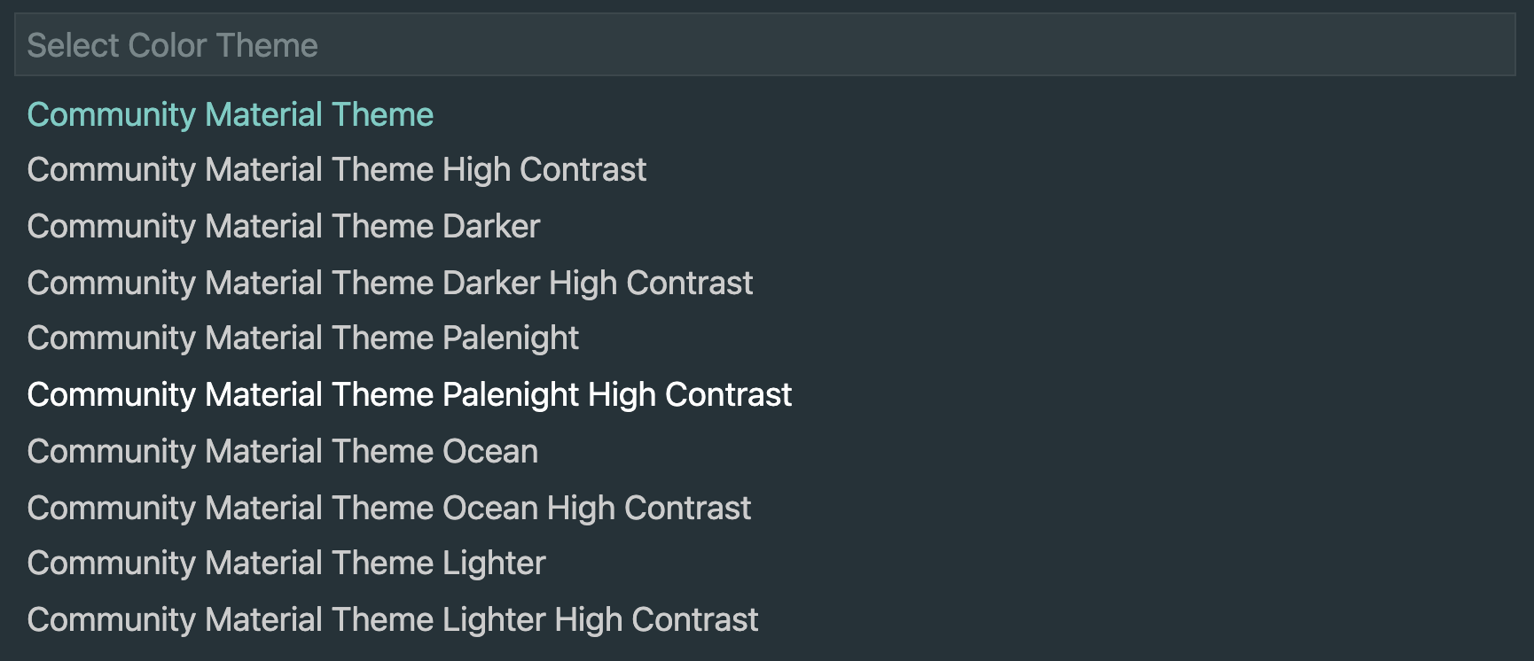 In addition, I would like to mention my VS Code theme, I use the Community Material Theme plugin