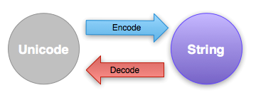 We learned how to represent Unicode strings above, but the fact is that Unicode strings only exist inside the program, and there is no unified way to express them and communicate them to the outside world, so when we want to save a string in a document or pass it to someone over the network, we have to encode the Unicode string into a str string first, and on the other hand, when we want to open a document with a certain encoding, we have to decode it. The way Python encodes or decodes is very simple, through the encode and decode functions we can convert between unicode and str.