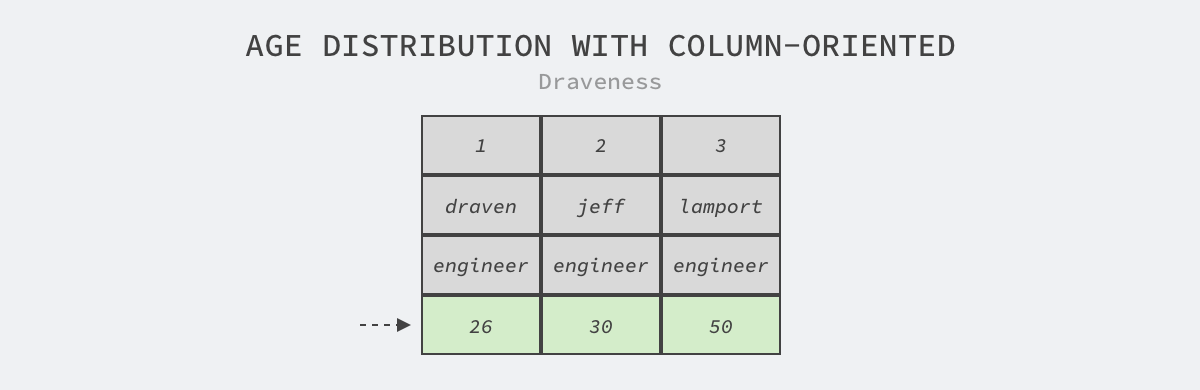 As shown above, when we only need to get the age distribution in the above table, we still need to read all the data in the table and discard the unneeded rows in memory, where the yellow part is the data we don’t care about, which wastes a lot of I/O and memory resources. While we can use auxiliary indexes to solve these problems, we are overwhelmed by the wide tables with tens or even hundreds of columns that are common in OLAP.