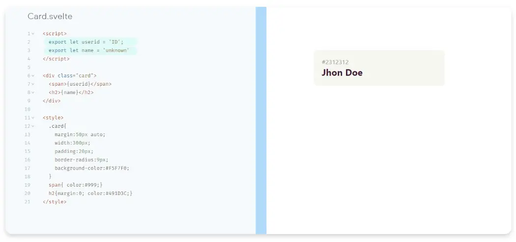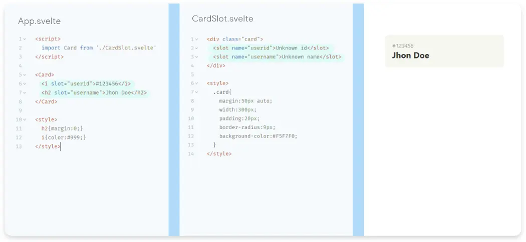 Discover all the examples presented in this article, which are available in Svelte REPL. To test, update the App.svelte file by importing a different card component to check the results. (demo)