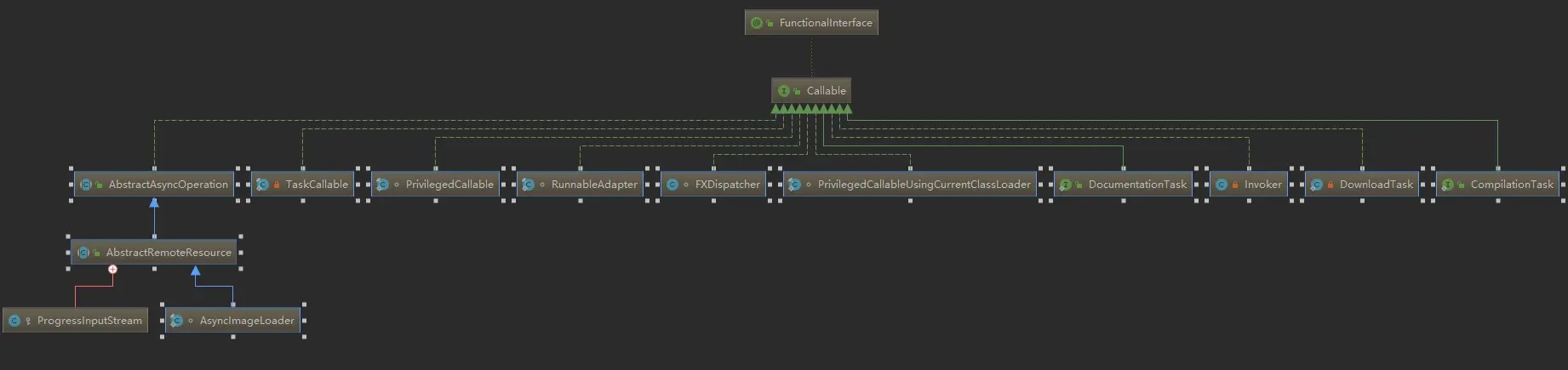 In the JDK, the subclasses that implement the Callable interface are shown in the following figure.