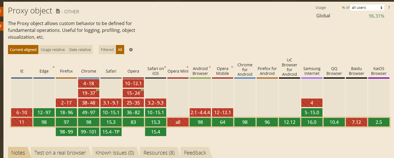But now, with each browser’s update iteration, Proxy’s support is getting higher and higher.