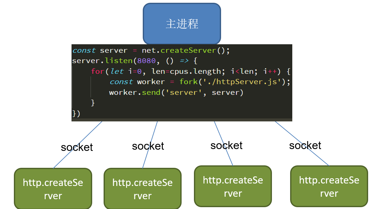 When I want to create a server with subprocesses, I use the above Fibonacci sequence-like idea and change fib.js to httpServer.js.