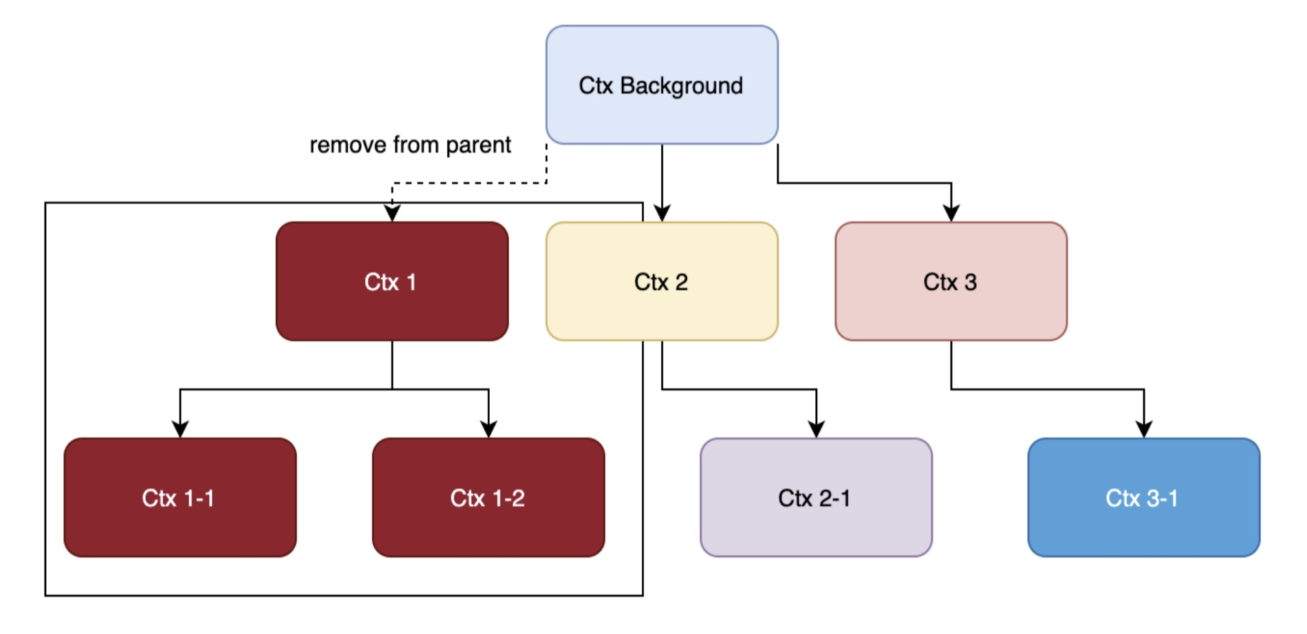 Current implementations are emptyCtx , valueCtx , cancelCtx , timerCtx . Child Context can be generated based on a Parent.