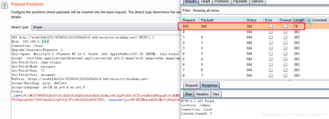 If some sensitive pages (such as management pages), deep in the intranet, the external network can not be accessed, but through the Host header attack + SSRF can be achieved to bypass access control, so as to access the intranet assets, here Fuzz intranet IP of the C segment 192.168.0.0/24, the direct use of Intruder enumeration.