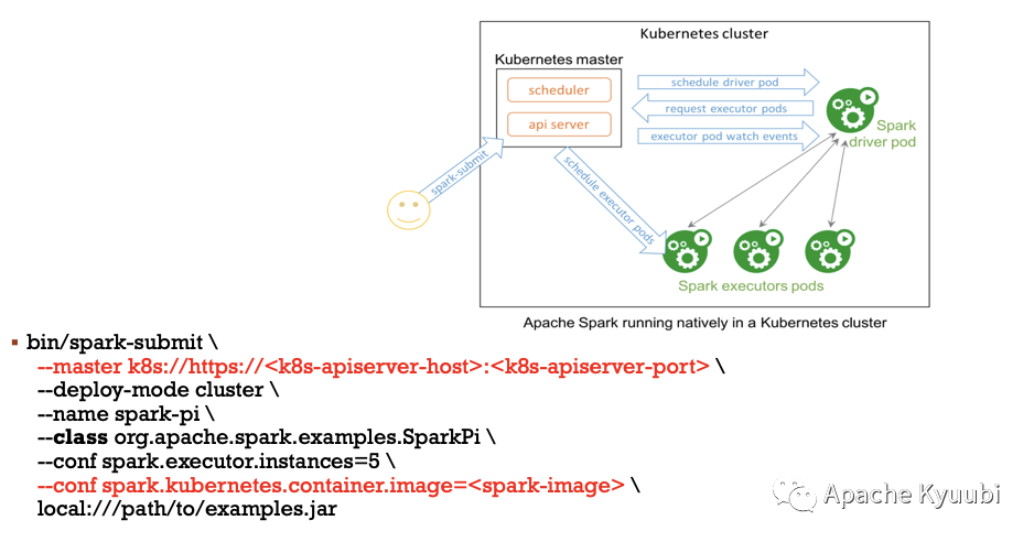 In addition, in addition to this approach, Kubernetes is much richer in terms of APIs. We can create and manage Spark on k8s applications by way of Spark Operator, such as kubectl apply -f. This approach is certainly the most elegant for the Kubernetes cluster itself and its users, while there is a learning cost for this segment of Spark users who have no experience with Kubernetes. Another advantage of this approach is that Spark-related libs can be deploy through Docker repository, and no separate Spark Client environment is needed to submit jobs. A separate Client environment can easily cause inconsistency between version and Docker, which increases the cost of operation and maintenance, and can also lead to some unnecessary online problems.