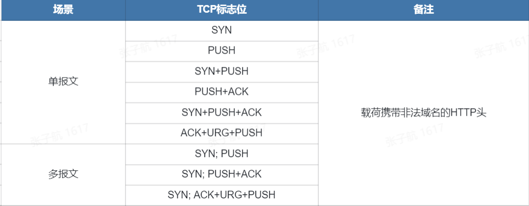 It is worth noting that a single message can trigger the interception of the scenario is generally the corresponding middlebox does not do any TCP handshake check, but based on a specific flag bit of the message directly extract the domain name and intercept, such middlebox is relatively small. The SYN;PUSH+ACK combination of request messages completely fakes the one-way TCP handshake and HTTP GET request scenario, which can deceive most middleboxes that can only see one-way traffic, so the success rate of triggering reflection amplification is higher.