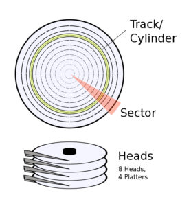 This starts with the structure of the hard drive (although most machines now use SSDs, much of the data is based on mechanical hard drives, so here is an example of how CHS addressing works.) . A hard drive is made up of several discs, each of which can hold data on both the front and back sides.
