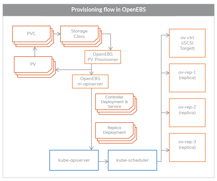 The OpenEBS control plane is responsible for providing volumes, associated volume operations such as snapshots, cloning, creating storage policies, enforcing storage policies, exporting volume metrics used by Prometheus/grafana, and so on.